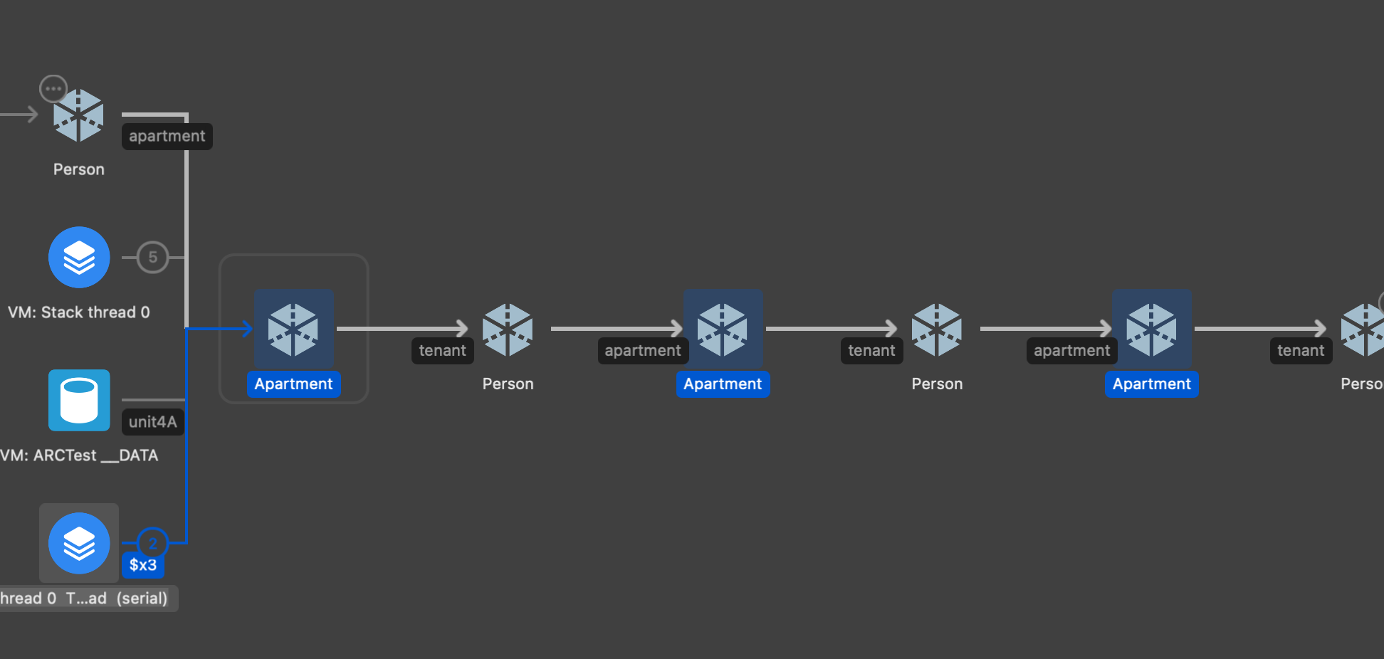 Person의 apartment가 참조하는건 Apartment 인스턴스인데 Apartment 인스턴스의 tenant는 Person 인스턴스를 참조중이고, 또 그 Person의 apartment는 Apartment...