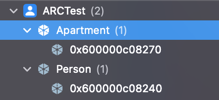 그림으로 보면 각 인스턴스의 내부 프로퍼티가 서로 strong 하게 참조되고 있는 것을 확실히 알 수 있다. 메모리 그래프로 보면...