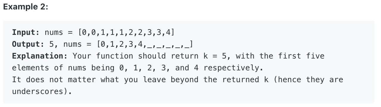 요 문제는 정렬된 배열 내에서 중복된 값들을 모두 제거하고 난 뒤의 배열 count를 체크한다. 인자로 들어오는 nums는 inout이라 값을 변경하면 외부의 값도 함께 변경되는 친구.