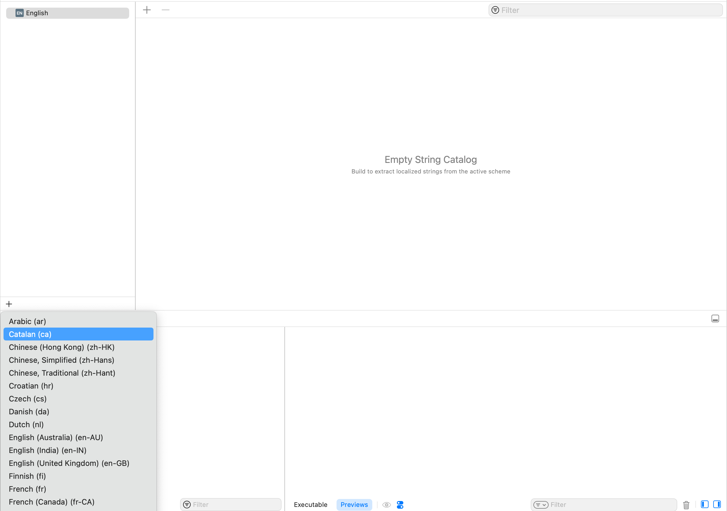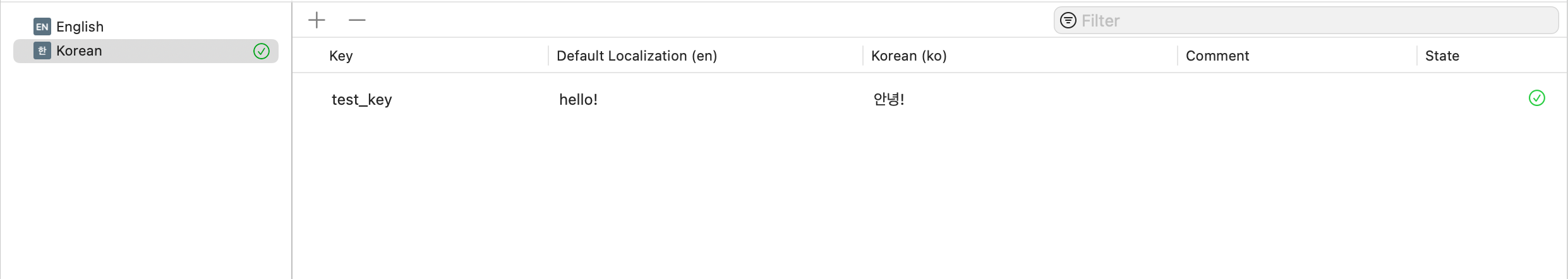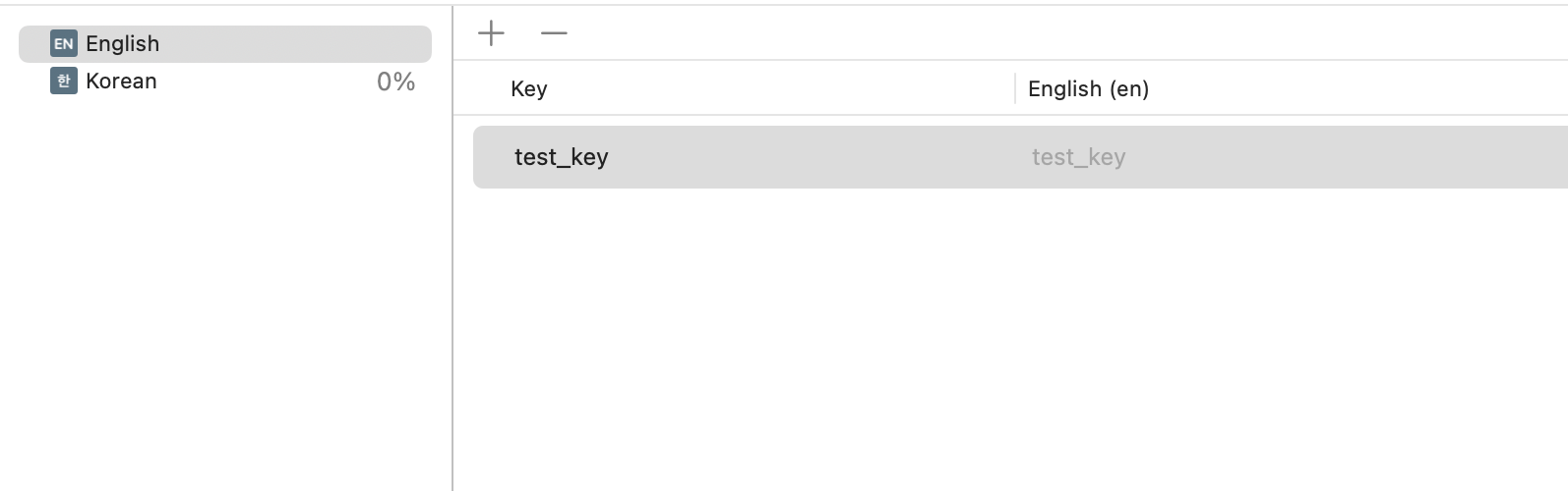처음 String Catalog 파일을 추가하면 English가 기본으로 나온다.