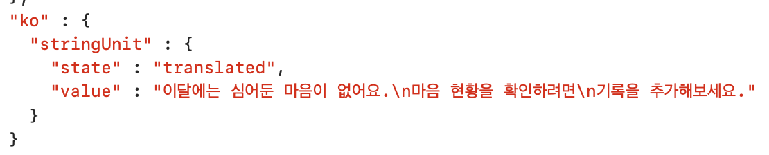 String Catalog에서 개행 문자를 추가해도 안먹어서 왜 그런걸까 싶었는데 Soucre Code로 열어서 수정하니 쉽게 해결!