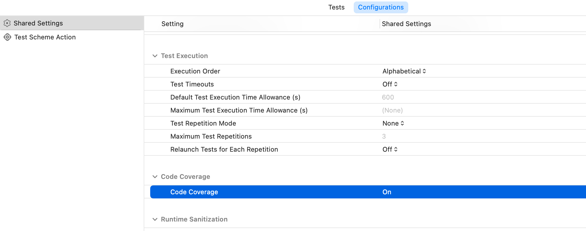 설정 이후에 github action에서 테스트 커버리지가 안나와서 봤더니 Code Coverage 옵션이 꺼져있었다... On으로 바꿔주었다.