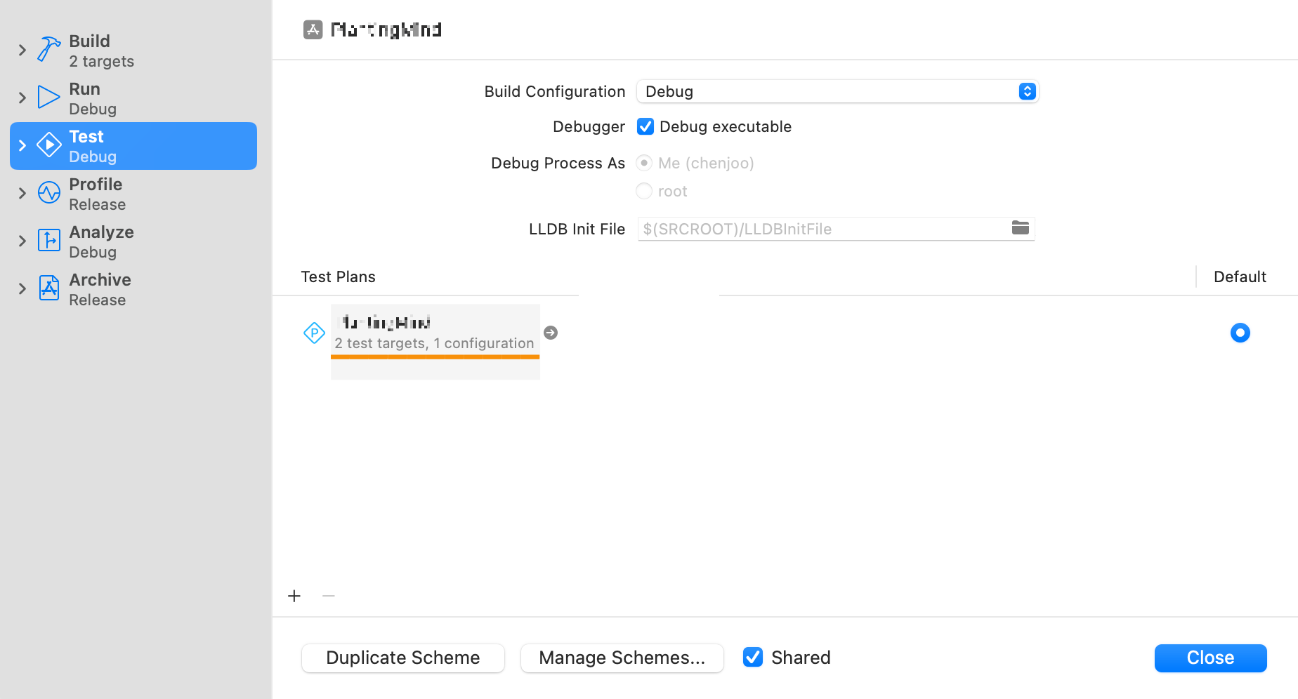 지금은 해결하고 난 이후라 Test Plans에 2 test targets, 1 configuration이라고 적혀있지만 원래는 0 test targets였다.