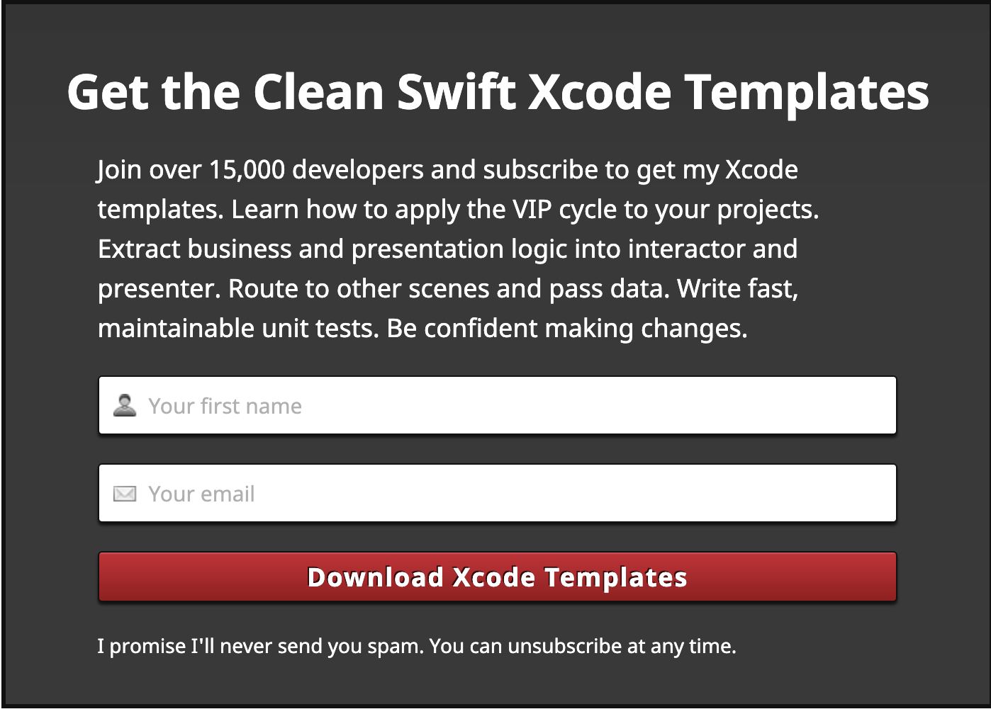Clean Swift 홈페이지에서 Xcode Template을 신청할 수 있으니 신청해서 사용하면 좋을 것 같다. 예제 코드도 github에 올라온 게 있어서 코드를 보며 공부하면 이해가 빠를 것 같다. 더 쉬운 예제 코드를.. 만들어볼 수 있으면 다른 게시글로 올려봐야겠다....