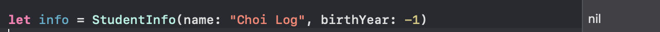 failable initializer를 통해 정상적으로 생성된 구조체이지만 옵셔널로 생성된다. 그래서 이 failable initializer는 아래 넣어둔 코드처럼 초기화가 제대로 되었는지를 확인할 때 사용할 수 있다고 한다.