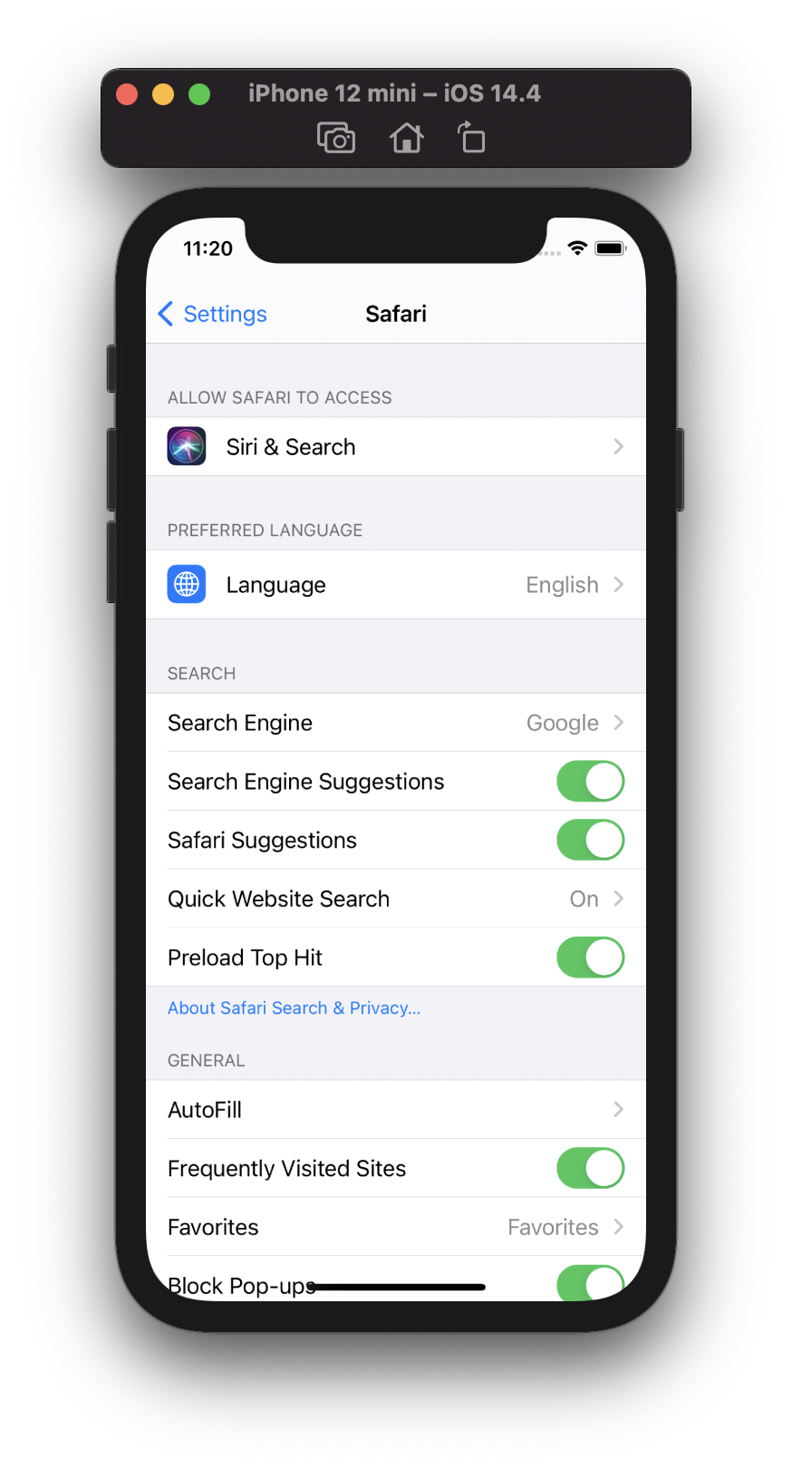 위 사진으로 따져보면 Siri & Search는 0번째 section의 0번째 row, Language는 1번 section의 0번 row로 볼 수 있다.